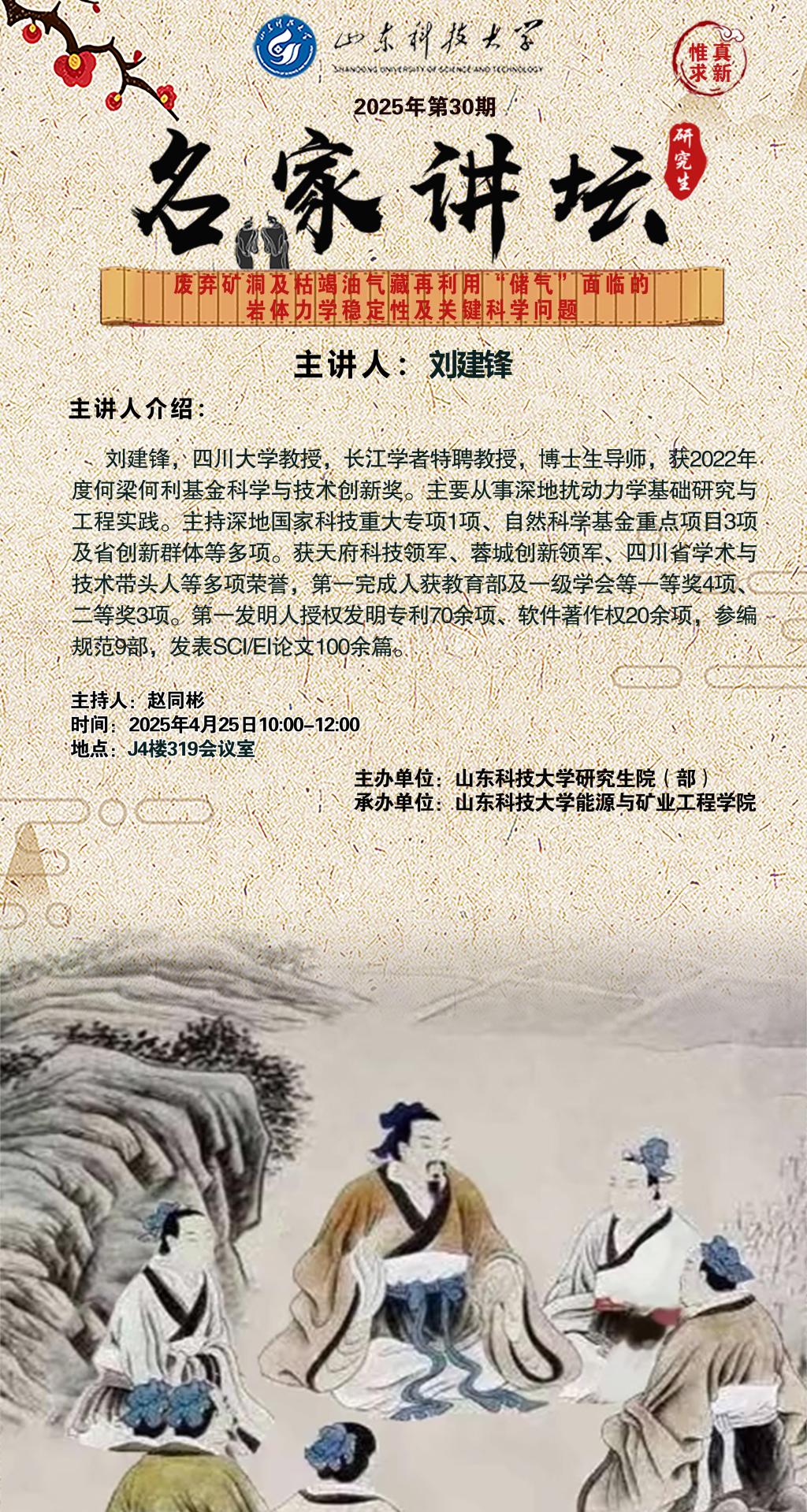 “名家讲坛”2025年第30期:废弃矿洞及枯竭油气藏再利用“储气”面临的岩体力学稳定性及关键科学问题(总1035期)